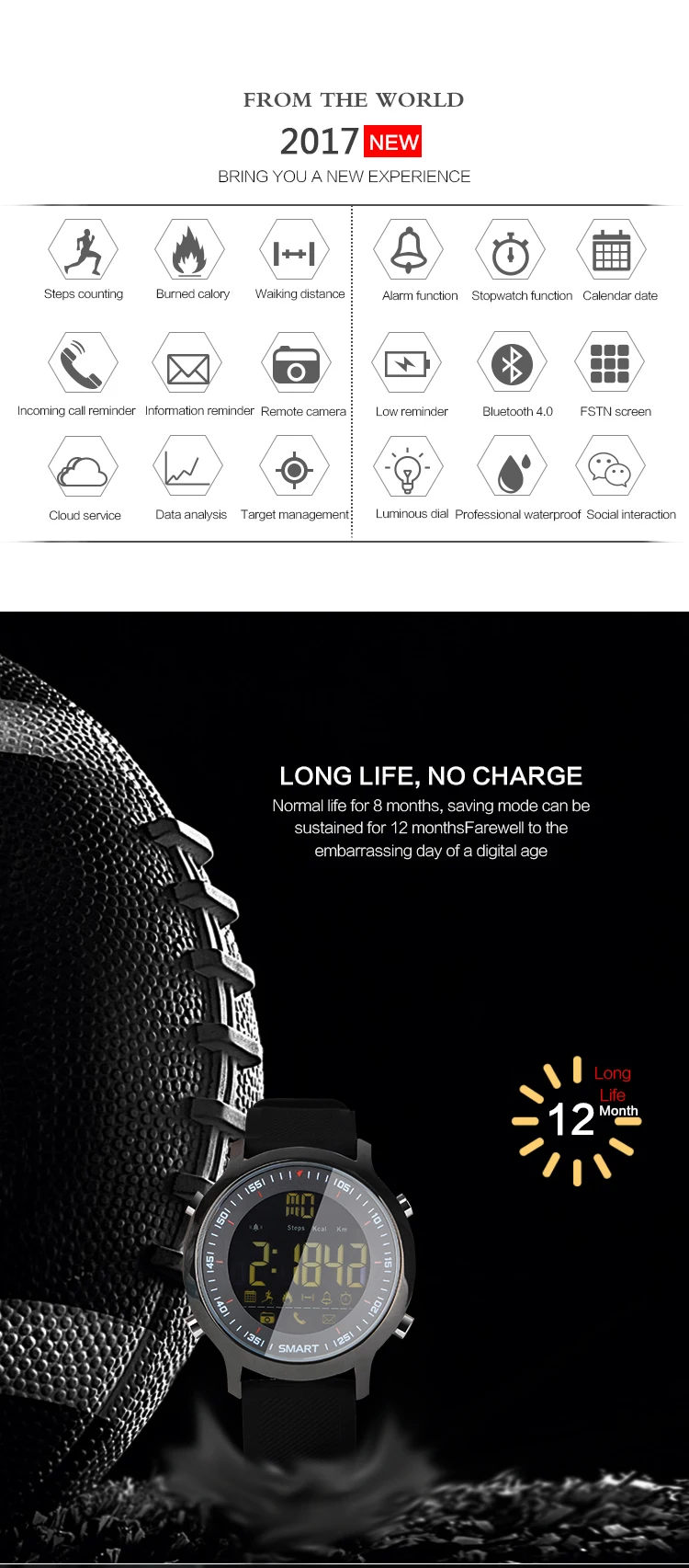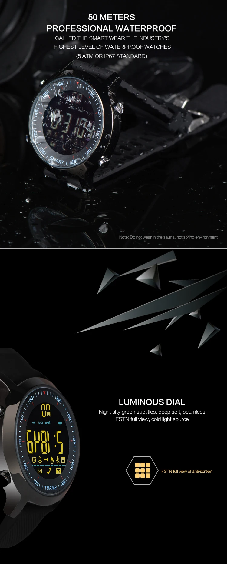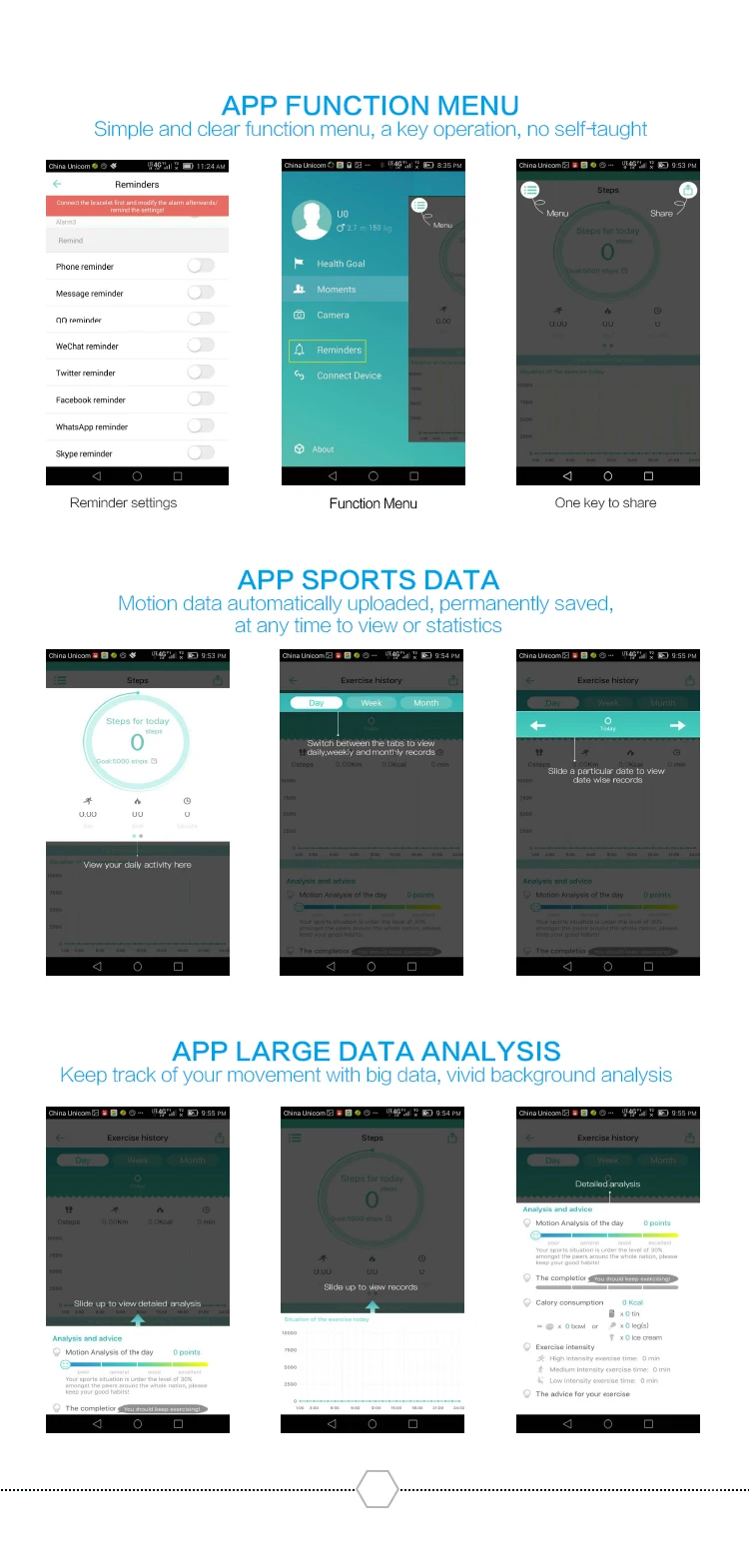 Function:Chronograph,Week,Remote Control,Noctilucent,Alarm Clock,Month,Passometer,Message Reminder,24 hour instruction,Call Reminder,Fitness Tracker