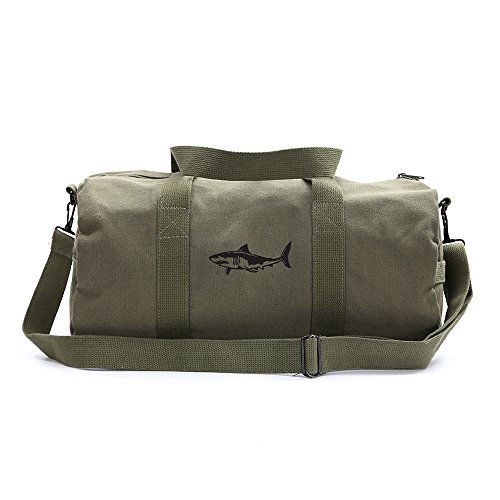 -. Brand : Army Force -. Department : unisex-adult -. Feature : 2 inch Wide Adjustable Shoulder Strap, Comfortable to Carry, Brass hardware / Enormous main compartment that can fit clothes, water bottles, car keys, wallets, and many more. / Twin carry on handles, 2 zipper pull tabs, Stonewashed 100% cotton canvas / Great For Camping, Traveling, Hunting, Backpacking, going to the gym, and many more. / Bag Manufacturer: Rothco, Bag Dimensions: 19" (L) x 9" (W) x 9" (H) -. Label : Army Force -. Manufacturer : Army Force -. Model : AFD-206-P -. MPN : AFD-206-P -. PackageQuantity : 1 -. PartNumber : AFD-206-P -. ProductGroup : Apparel -. ProductTypeName : LAGE -. Publisher : Army Force -. Size : One Size -. Studio : Army Force -. Title : Great White Shark Silhouette Sport Heavyweight Canvas Duffel Bag