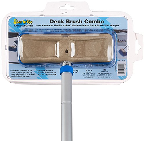 -. Binding : Sports -. Brand : Star Brite -. EAN : 0071247401929 -. Feature : Medium duty 8-Inch deluxe deck brush with bumper has high density Star prene* fibers for all-purpose deck cleaning. / Constructed with aircraft grade, triple anodized aluminum for years of maintenance-free use. / *Star prene is a lightweight polymer fiber that does not stain, discolor or become brittle. It resists most cleaning chemicals and withstands heat up to 200░F. This space-age material will not rot, mildew or absorb odors. -. Label : Star brite -. Manufacturer : Star brite -. ManufacturerPartsWarrantyDescription : Parts -. Model : 040192 -. MPN : 040192 -. PackageQuantity : 1 -. PartNumber : 040192 -. ProductGroup : Sports -. ProductTypeName : SPORTING_GOODS -. Publisher : Star brite -. ReleaseDate : 2010-09-01 -. Size : 8-Inch -. SKU : 214612 -. Studio : Star brite -. Title : Star brite 3'-6' Standard Extending Handle With 8" Deluxe Brush -. UPC : 071247401929