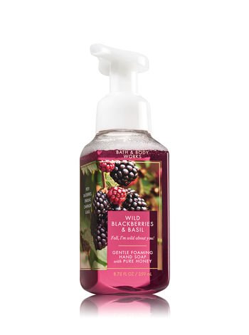 -. Binding : Misc. -. Brand : Bath & Body Works -. Color : burgandy -. EAN : 0667544691233 -. Feature : Bath and Body Works Wild Blackberries and Basil 8.75 Ounce Foaming Hand Soap / This full size gentle foaming hand soap contains pure honey / A delightful mix of fresh blackberries, sparkling champagne and basil / Perfect for Fall or any time of year -. IsAdultProduct : 0 -. Label : Limited Brands -. Manufacturer : Limited Brands -. MPN : None -. PackageQuantity : 1 -. PartNumber : None -. ProductGroup : Beauty -. ProductTypeName : BEAUTY -. Publisher : Limited Brands -. Size : 8.75oz full size -. Studio : Limited Brands -. Title : Bath and Body Works Foaming Soap Wild Blackberries Basil 8.75 Ounce -. UPC : 667544691233