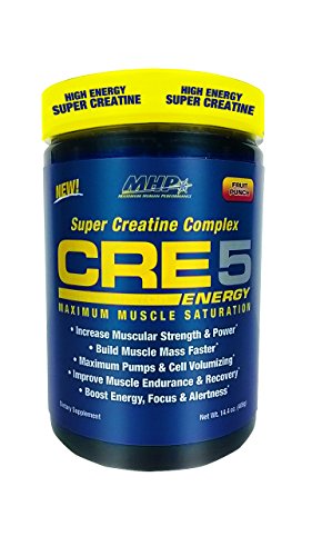 ReleaseDate : 2015-07-27 Studio : MHP Publisher : MHP Binding : Health and Beauty Product Description MHP's CRE5 ENERGY takes creatine to a whole new level of performance enhancing excellence. CRE5 ENERGY's advanced proprietary super creatine complex [creatine monohydrate, creatine-HCl, Creatine MagnaPower (as magnesium creatine chelate), creatine alpha-ketogluterate and creatine alpha-amino butyrate] is designed for optimal creatine absorption and saturation. Research shows that when athletes saturate their muscles with creatine through supplementation, they experience increased strength, power, muscle cell volumizing and increased muscle mass. CRE5 ENERGY's superior absorption will allow you to experience the full muscle building, strength, recovery and other performance benefits of creatine supplementation. What makes CRE5 ENERGY even more groundbreaking is its precise composition of novel ingredients bound to creatine that not only enhance creatine absorption, they also offer unique performance enhancing benefits apart from creatine itself. These additional benefits include improved pH regulation and increased blood volume for superior exercise performance, muscle building and pumps. In addition, CRE5 ENERGY provides an immediate boost of energy and alertness with caffeine, theanine and citicoline. This blend of ingredients has been shown to synergistically improve energy, focus, memory and performance and even increase brain ATP levels, thereby allowing you to get a quick boost of energy and sharp focus with your creatine supplement. This energy blast makes CRE5 ENERGY an excellent pre-workout supplement option. Not all creatine is created equal - it's time to upgrade your creatine to CRE5 ENERGY, MHP's scientifically supported energizing creatine blend. 0