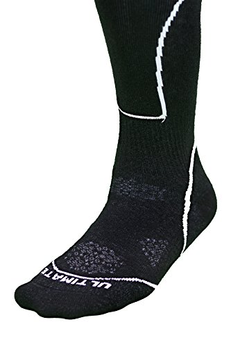 -. Binding : Apparel -. Brand : Ultimate Socks -. Color : Black -. Department : mens -. Feature : HIGHEST MERINO WOOL CONTENT 65%. We don't skimp on the wool to save money. / COMFORT: Midweight cushioning is the perfect balance of cushioning, moisture management, and durability. / SOCK TECHNOLOGY: FLAT KNIT TOE SEAM: Virtually unnoticable even in tight ski boots! ARCH BRACE: Holds the sock in place STAY UP CUFF: No saggy socks here! Ultra smooth cuff stays up! / ULTIMATE KNITTING: Utilizing our unique knit pattern our socks deliver the right amount of cushioning in the toe heel and shin. / ULTIMATE GUARANTEE: 100% guarantee. Love them or we give you your money back. -. ProductGroup : Apparel -. ProductTypeName : SOCKSHOSIERY -. Title : Ultimate Socks Merino Wool Ski Snowboard Performance Socks Lightweight Mens
