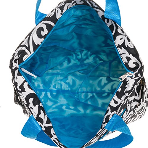 Silverhooks Womens Damask Beach Tote Bag w/ Blue Trim (Black & White)