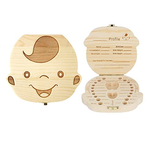Viyor Baby Teeth Box Cute Wooden Milk Teeth Teeth Save Box Delicious Souvenir Teeth Saver Box for Kids Boy&Girl Types