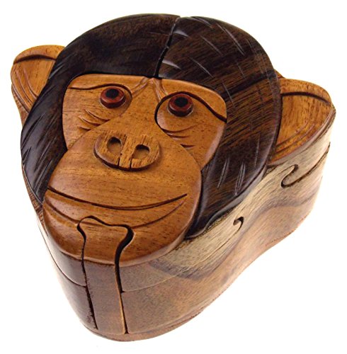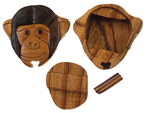 Studio : Hickoryville Publisher : Hickoryville Binding : Kitchen Product Description Handmade carved Monkey Face wood intarsia puzzle box bundled with Hickoryville instructions on opening and closing the puzzle box. This secret puzzle box is a beautifully handcrafted creation, high quality workmanship, made of natural wood. The box is a puzzle that comes apart into four pieces and discovers a secret space to keep special treasures. Inside storage space is approximately 2.7 inches long x 2 inches wide. Every box is a unique, handcrafted creation and yours may vary slightly from the photos. 0