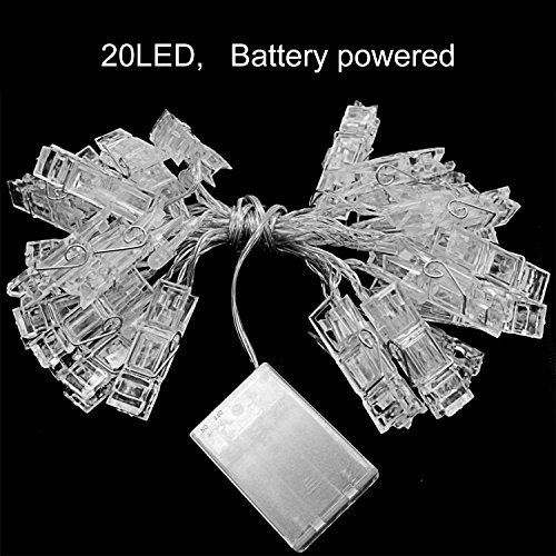 KEKH 20 LED Photo Clips String Lights, Christmas Indoor Fairy String Lights for Hanging Photos Pictures Cards and Memos, Ideal gift for Dorms Bedroom Decoration (20 LED Warm White)