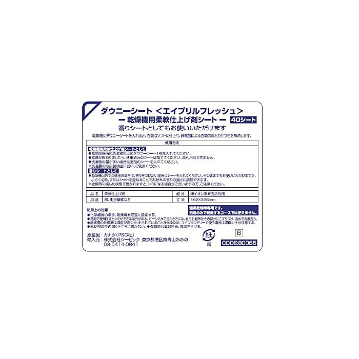 원본상품명: Downy (ダウニ?) シ?ト エイプリルフレッシュの香り 40枚入