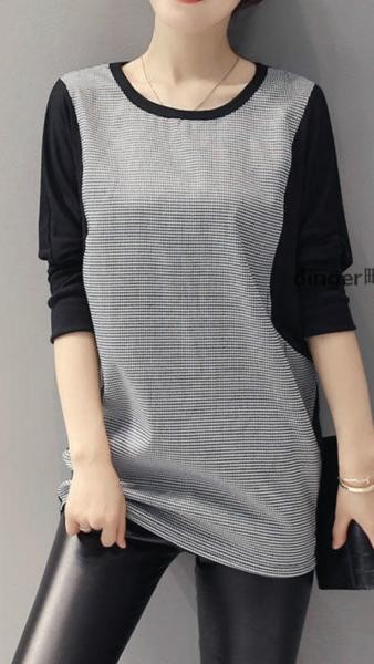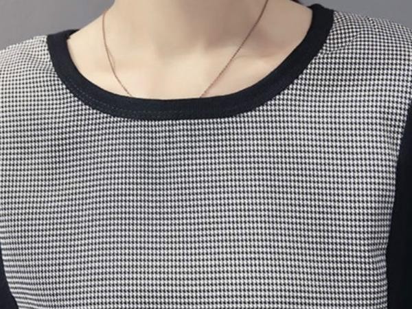 カジュアル 千鳥格子 ドルマンスリーブ 長袖 ロング丈 カットソー Tシャツ