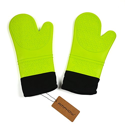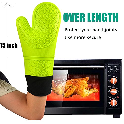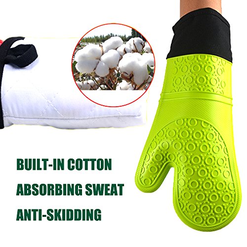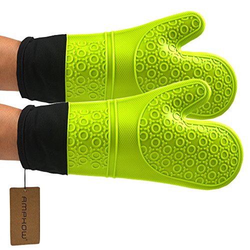 Heat Resistant Gloves - AMPHOW Versatile Oven Grilling Gloves Waterproof Non-slip Potholder with Extended Protection - 12.5" For Extra Forearm Protection, 1 Pair, Green