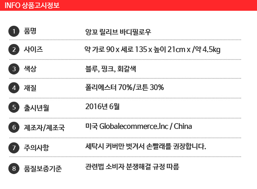 - 세탁방법 및 취급시 주의사항커버만 벗겨서 손빨래를 권장합니다.
