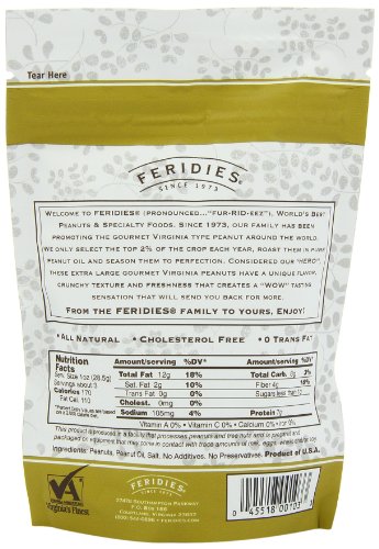 FERIDIES Salted Virginia Peanuts, 3-Ounce Bags (Pack of 10)