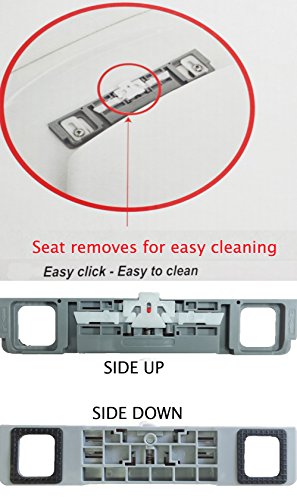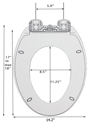 -. Feature : Quiet-Close functionality eliminates slamming and increases hygiene and safety / Quick-Release functionality allows the seat to be removed easily from the toilet / Easy release toilet seat, easy click, easy to clean / CHECK CAREFULLY THE SIZE NEEDED , this toilet seat is 17"L X 14.2"W / Made of solid polypropylene and resistant to chipping, staining, fading and peeling
