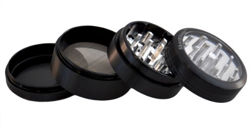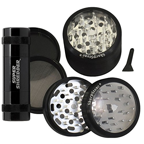2.2" - Black 4 Piece SharpStone® Clear Top Herb Grinder + SUPER SHREDDER Pollen Press