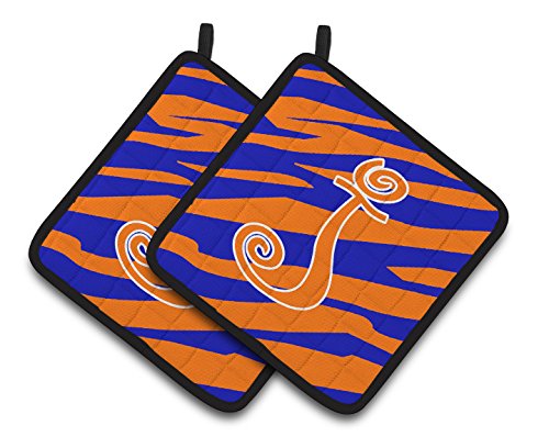 Caroline's Treasures Monogram Initial J Tiger Stripe Blue & Orange Pair of Pot Holders CJ1036-JPTHD, 7.5HX7.5W, Multicolor