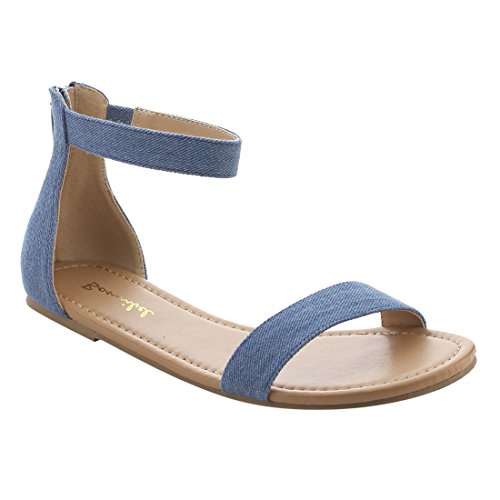 BONNIBEL FJ89 Women's Basic Flat Heel Ankle Strap Single Band Sandals
