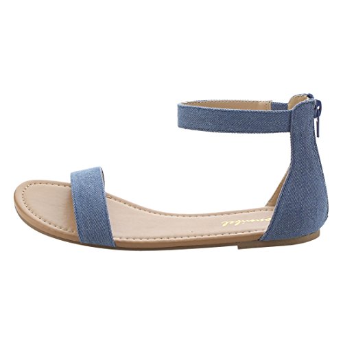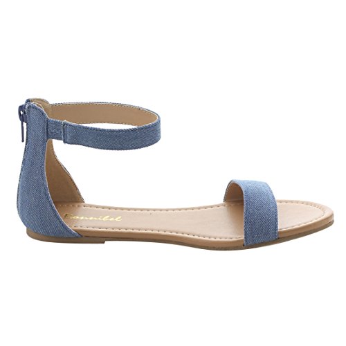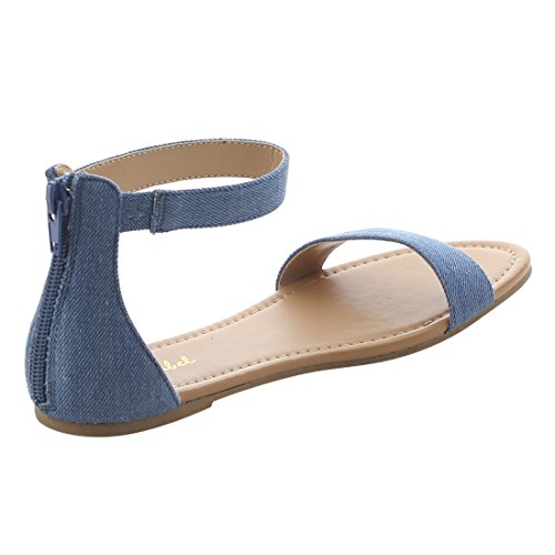 Product Description Feel comfortable with every step in these fashionable women's basic flat heel ankle strap single band sandals.Designed with back zipper,stiching details,open-toe silhouette. 0