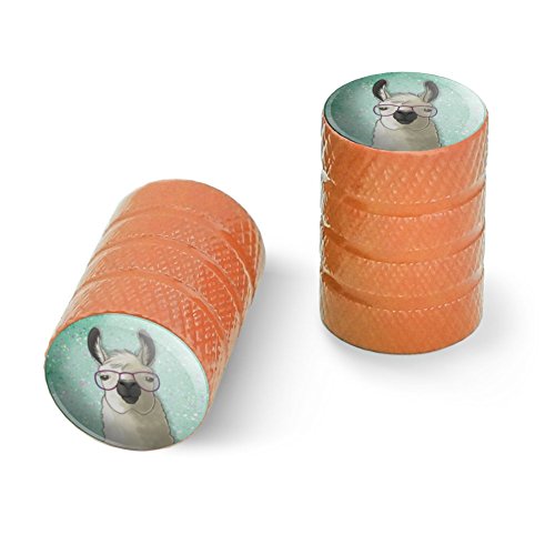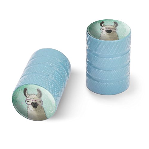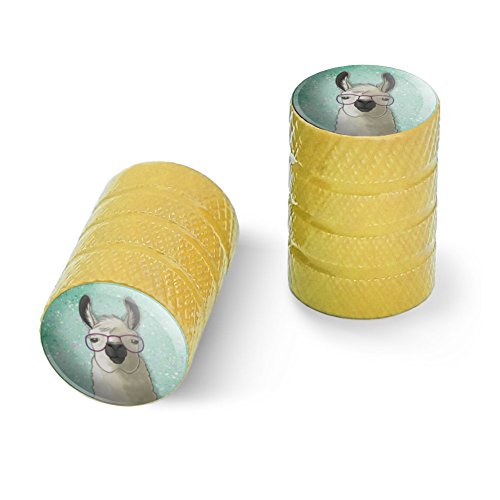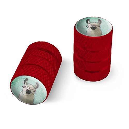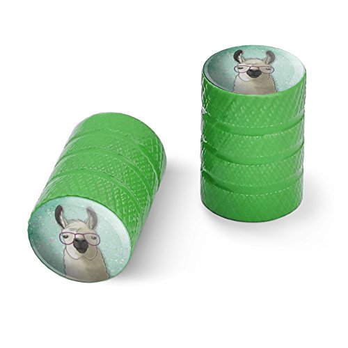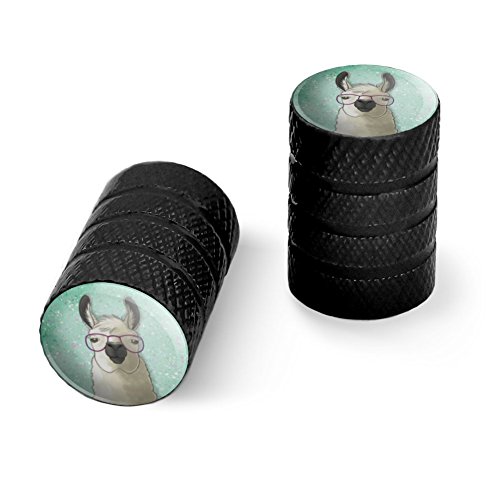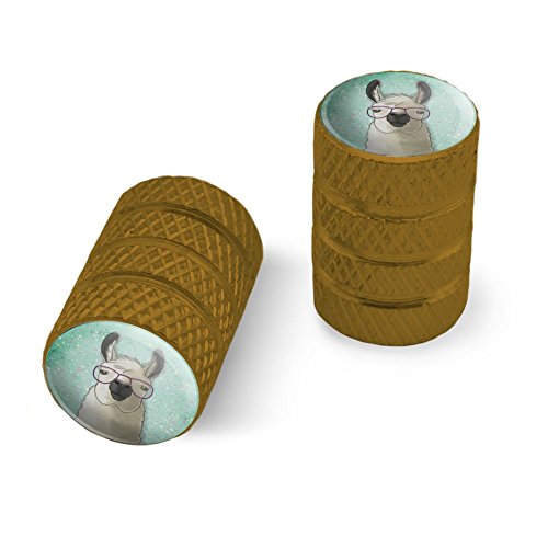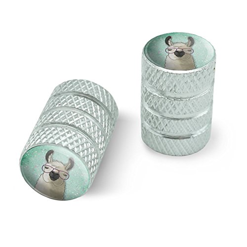 | (Graphics and More)/Cycling Wheel Sports/Bike Trainers/DIRECT FROM USA/Hip Llama with Glasses Motorcycle Bicycle Bike Tire Rim Wheel Aluminum Valve Stem Caps - Aluminum |