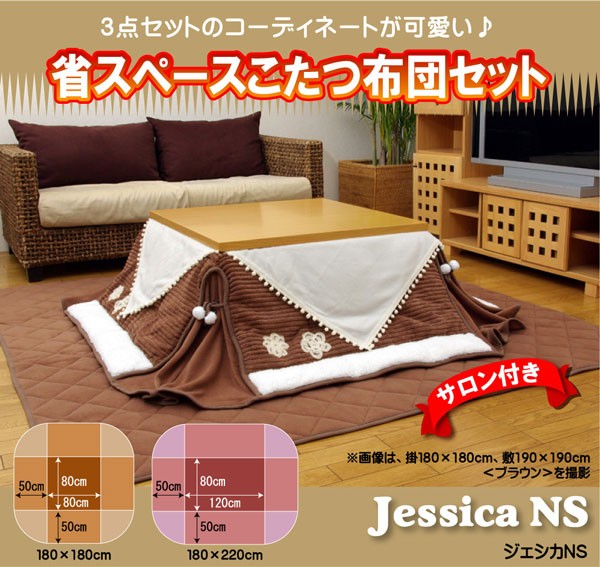 【商品名】省スペース こたつ掛敷布団セット 『ジェシカNS省』 ブラウン 180×220cm