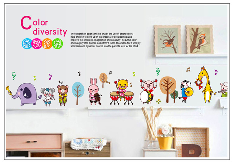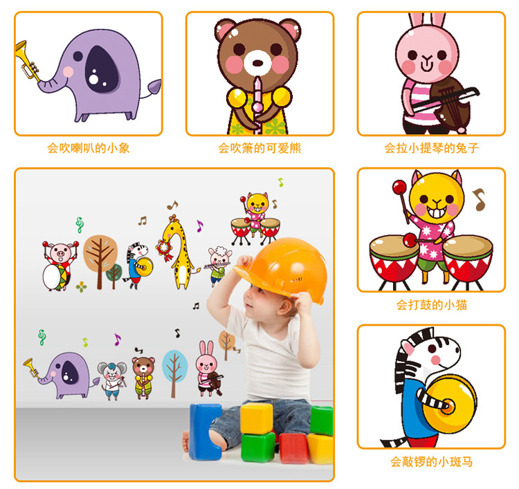 沃雅 儿童房男女孩卧室墙面卡通装饰贴画幼儿园教室布置小动物墙贴纸