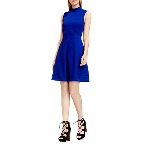 Vince Camuto Women's Sleeveless Houndstooth Texture Mock Neck Flare Dress