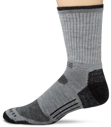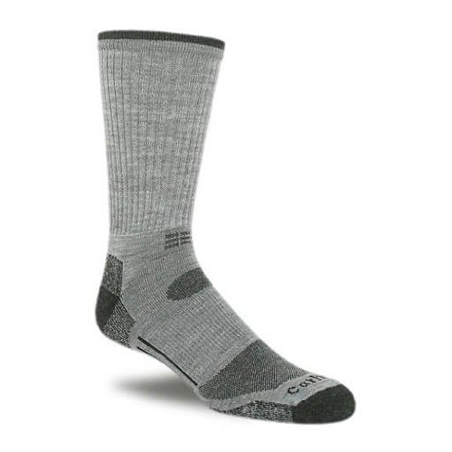 Studio : Carhartt Socks Publisher : Carhartt Socks Binding : Apparel Product Description Our high-tech crew with Graduated Compression top ensures that legs and feet stay energized throughout your most active day. Mesh cooling panels, plus instep channels, promote air flow and a braced arch adds stability and holds the sock in place. A resilient wool/acrylic blend transports moisture, naturally combats odor and retains its shape and bounce wash after wash. Reinforced for durability, this sock delivers ultimate all-terrain performance. Made in the USA 0