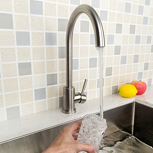 SARLAI Best Commercial Stainless Steel Brushed Nickel Hot& Cold Single Handle Kitchen Sink Faucet, Single Lever Kitchen Faucets