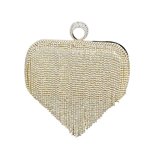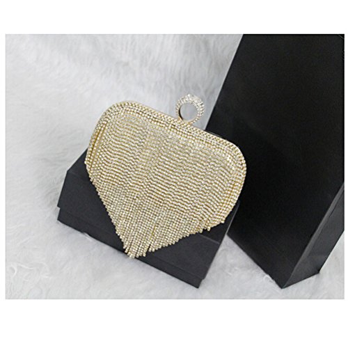Package Including 1 x Women Dinner Party Bags Bride Handbags Wallet Case Artificial Diamond Tassels Handbags for Banquet (Gold) 0