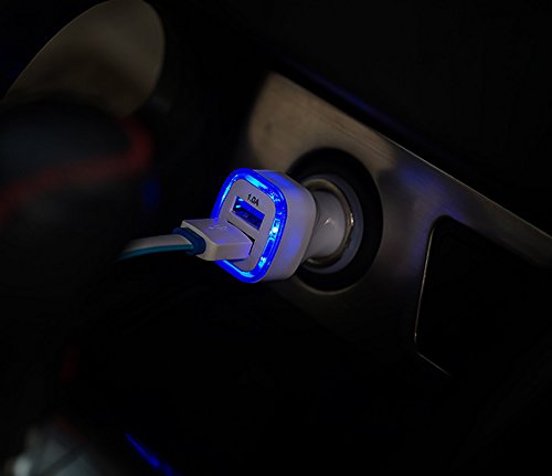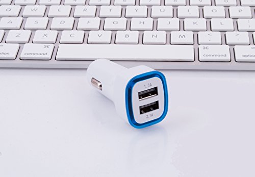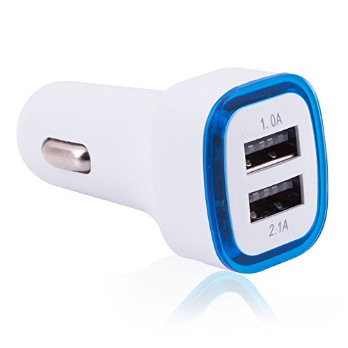 2-Port USB Car Charger, 2.1A 1.0A Smart Dual USB Fast-Charging LED Light for IPhone 7, iPhone 6, 6 Plus, 6S, 5, 5S, iPad (Blue)