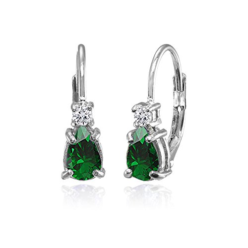 Sterling Silver Peridot and White Topaz Dainty Teardrop Huggie Leverback Earrings
