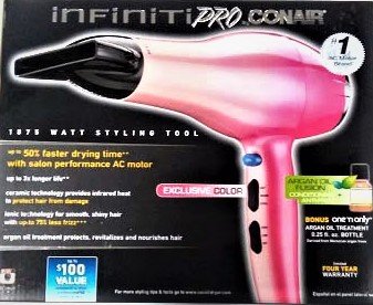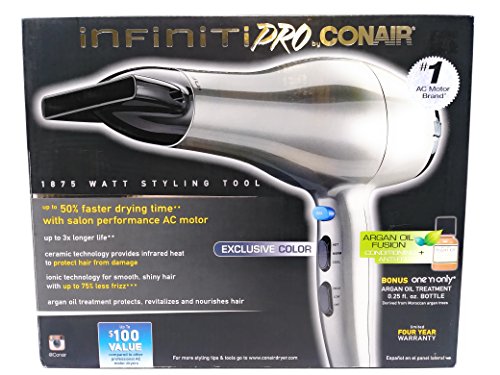 The Infiniti Pro by Conair 1875 Watt Full Size Styler has a powerful AC Motor which delivers powerful airflow for up to 50% faster drying time and 3x longer dryer life