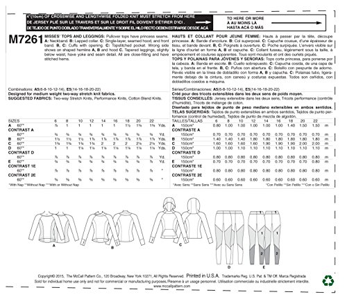 McCall's Patterns M7261 Misses' Tops & Leggings, E5 (14-16-18-20-22)
