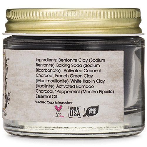 -. Feature : Get Whiter Teeth, A Brighter Smile & Healthier Gums in Minutes a Day or Your Money Back! One of the most robust activated charcoal personal care tooth whitening formulas on the market - that actually tastes good. / More Than Activated Coconut Charcoal - Our natural teeth whitener includes food grade Bentonite Clay, Baking Soda, French Green Clay, White Kaolin Clay, Bamboo Charocoal & Organic Peppermint Oil. Perfect for sensitive teeth! / Pain Free, Non-Toxic & Enamel-Safe Teeth Stain Remover You Can Have Confidence In. Whiten your teeth while getting healthier gums and fresher breath. No fluoride, no peroxide, chemical free & made in the USA. / Safe & Effective. Unlike teeth whitening strips, bleaching kits or expensive dental procedures, activated charcoal removes stains without stripping enamel or weakening your teeth. / Buy With Confidence. We know how important healthy teeth and a bright smile is, which is why we offer a "Love Your Skin Or Your Money Back" 60 day guarantee. As a family owned company with products made in the USA, we take customer satisfaction quite seriously.