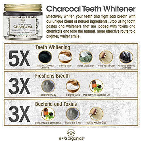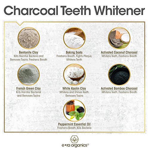 -. Title : Activated Charcoal Teeth Whitener (2oz.) Premium Organic Coconut & Bamboo Tooth Whitening Oral Powder with Kaolin Clay, Bentonite Clay, Peppermint & More for Brighter Smile & Healthier Gums.