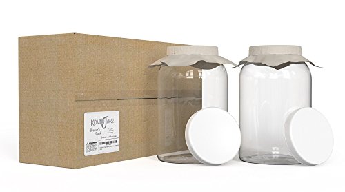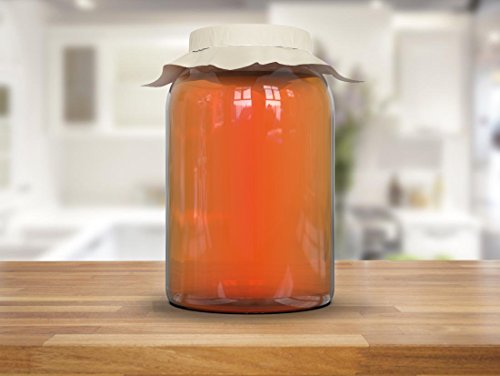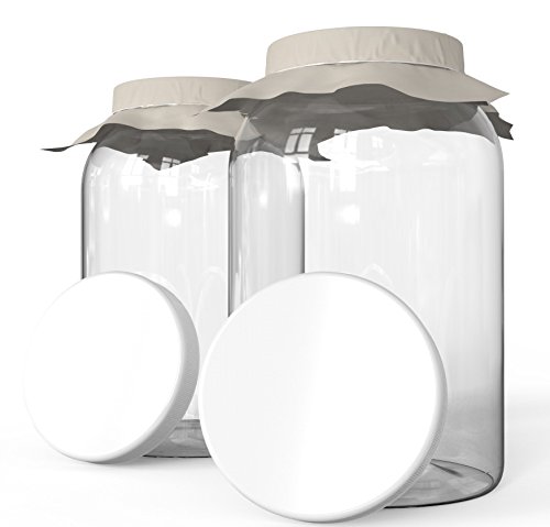 KombuJars Kombucha Jars 1 Gallon Glass (2 pack) Brewing Fermenting Storage Bottles, With Plastic Lids, Cloth Cover, and Bands (2)