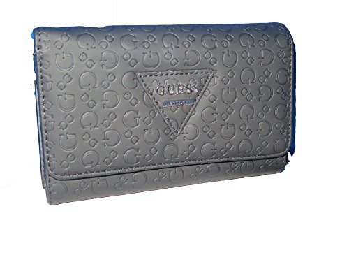 Guess POLISHED Black Signature Leather Embossed Womens Wallet Wristlet