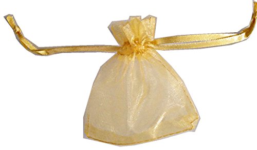 Gold Organza Bag Pouch with Ribbon Ties 2" X 3" (Pack of 24)