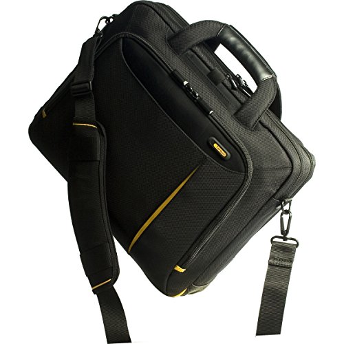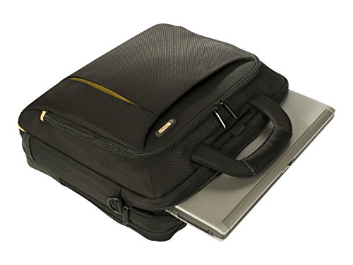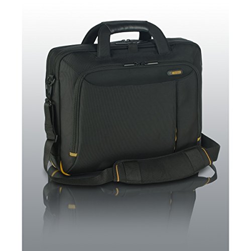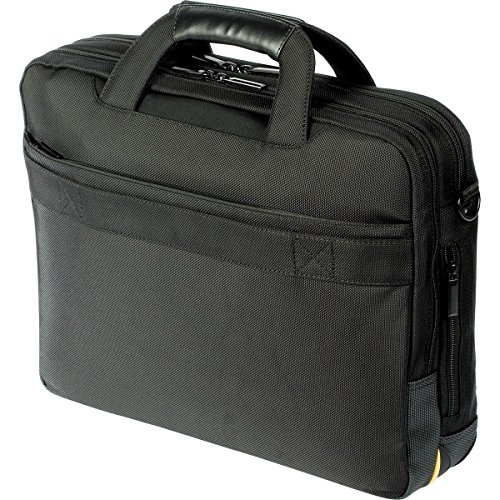 The Meridian II Toploading Case from Targus is an all-inclusive, stylish case for traveling. Designed to fit laptops with up to 15.6-inch screens, it features a padded compartment that keeps your laptop safe during travel. This case is constructed of durable nylon materials with signature weather mesh on the bottom of the case which provides a stylish design element and shock absorption. The front workstation includes a cell phone pocket, pen loops, business card holder, and multiple accessory media storage pockets for added convenience. Its expandable file section keeps your documents organized during travel. This case is incorporated with a shoulder strap that is comfortable, adjustable, and uses metal hooks and D-rings. Additionally, the premium soft twill lining throughout the case prevents valuables from being scratched and adds a quality feel. This case uses the patented SafePort sling to help protect your laptop from damage if dropped in addition to a Targus patented retractable water bottle holder and retractable airline ticket holder. The leather wrapped handles are magnetized to give you a comfortable and convenient carrying experience.