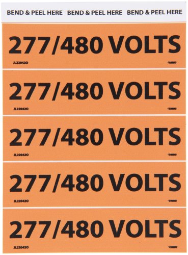 NMC JL22042O Electrical Marker, Legend "277/480 VOLTS", 4-1/2" Length x 1-1/8" Height, Pressure Sensitive Vinyl, Black on Orange (Pack of 25)