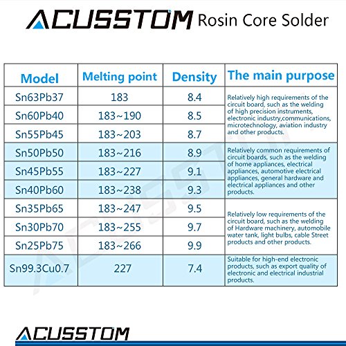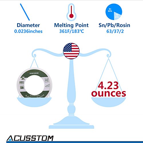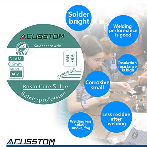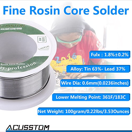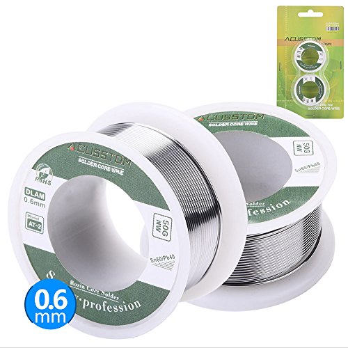 Lead Solder Wire Acusstom AT-2 63-37 with Rosin Core Solder for Electrical Solderding and DIY 100g/3.527oz(0.6 mm/0.0236 in)