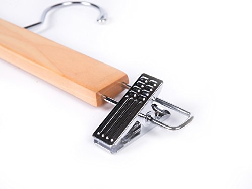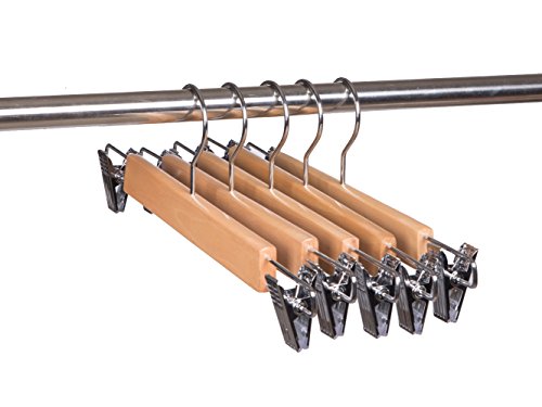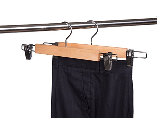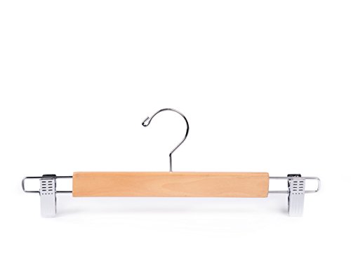 -. Binding : Kitchen -. Color : Natural color -. EAN : 0606860717241 -. Feature : Polished chrome swivel hook easy to access / Hardwood strong enough to sustain all kind of pants and skirts / Smooth finish protect your hand and clothes from abrasing / Space saving body maximize your closet's space / Two adjustable anti-rust clips for skirts, pants, trousers and so on -. IsAutographed : 0 -. Label : Amber Home -. Manufacturer : Amber Home -. Model : W0304 -. MPN : W0304 -. PackageQuantity : 10 -. PartNumber : W0304 -. ProductGroup : Home -. ProductTypeName : HOME -. Publisher : Amber Home -. Size : 9.05 x 1.12 x 0.47 inches -. Studio : Amber Home -. Title : Amber Home Heavy Duty Skirt Hangers, Wooden Pants Hangers, Slacks Hangers Natual Color with Chrome Clips 10 Pack -. UPC : 606860717241