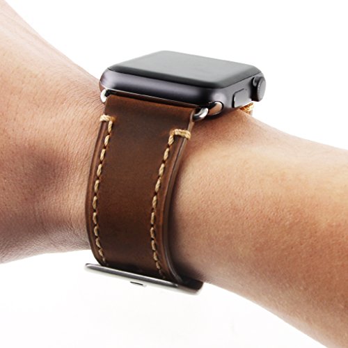 Vintage style on Crazy horse Genuine Leather with Handmade.suitable black color for Apple watch,special Line strips design ,makes your Apple watch awesome; Fit for Apple watch all versions 42mm, about 3.5 ounces