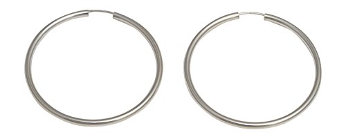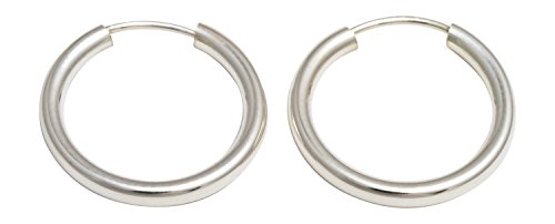 Round off your look with these sterling silver continuous endless hoops. With a 2mm wide tube, these are sure to be your next go-to pair of continuous endless hoops. You can wear them for an evening out or even pair them with a sundress! The endless clasp is easy to use and gives you a continuous, streamlined look. Each pair of hoop earrings comes gift wrapped in an attractive package. These hoops are made from 0.925 sterling silver. All sterling silver is nickel free, and great for sensitive skin. It is NOT plated, and has a hollow body. Each earring comes authenticated with a sterling silver stamp.Feature