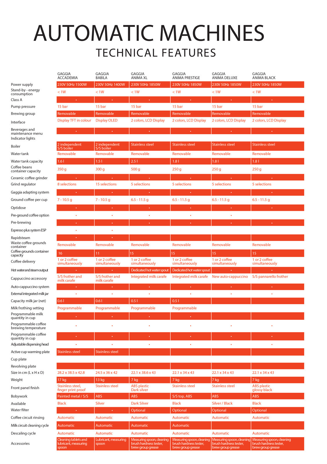 Your coffee machine switches off automatically after one hour. In the energy efficient stand-by mode your Gaggia machine will drain less than 1kW/h and save you money compared to other espresso machines.