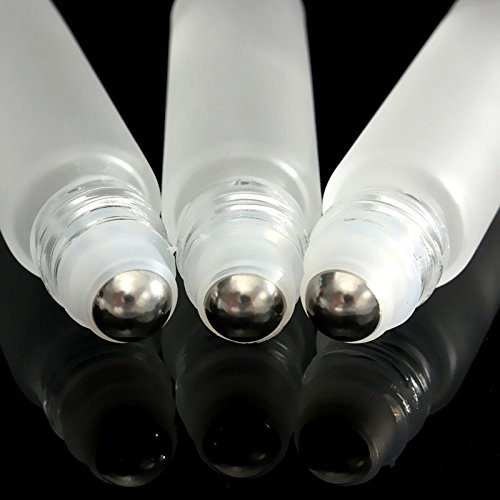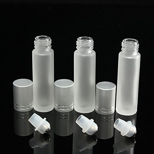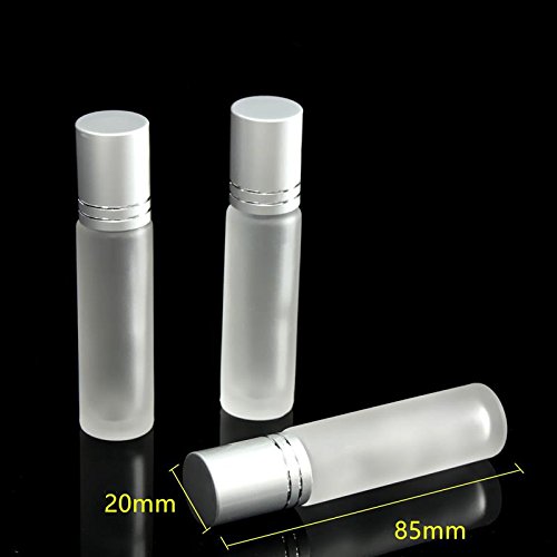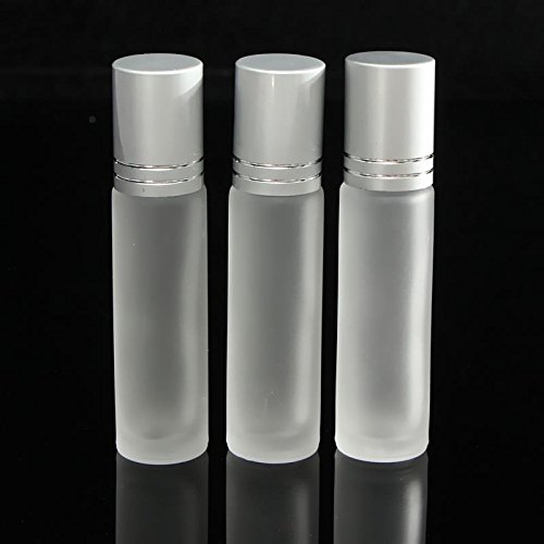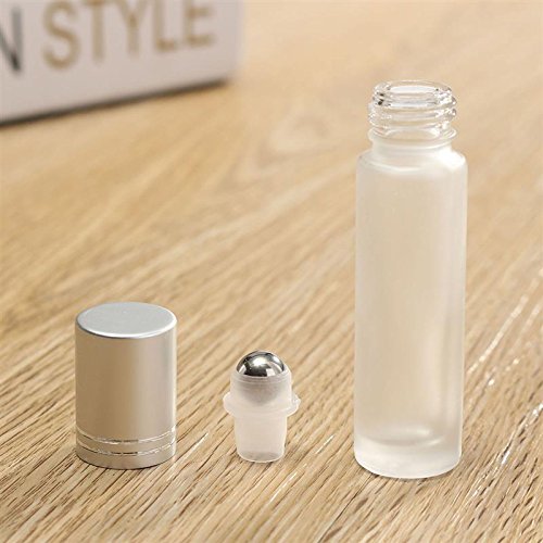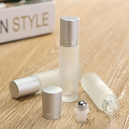 Coobbar 10ml Silver Cap Glass Bottle Roll On Empty Fragrance Perfume Essential Oil Bottles Eyes Cream Bottle With Stainless Steel Roller Ball (Clear)