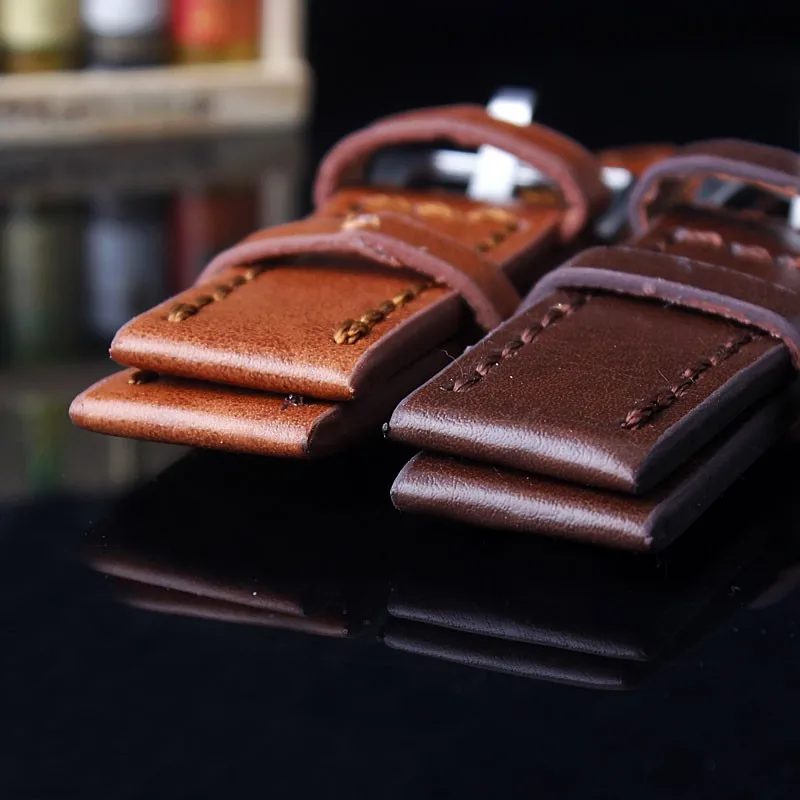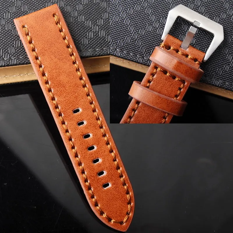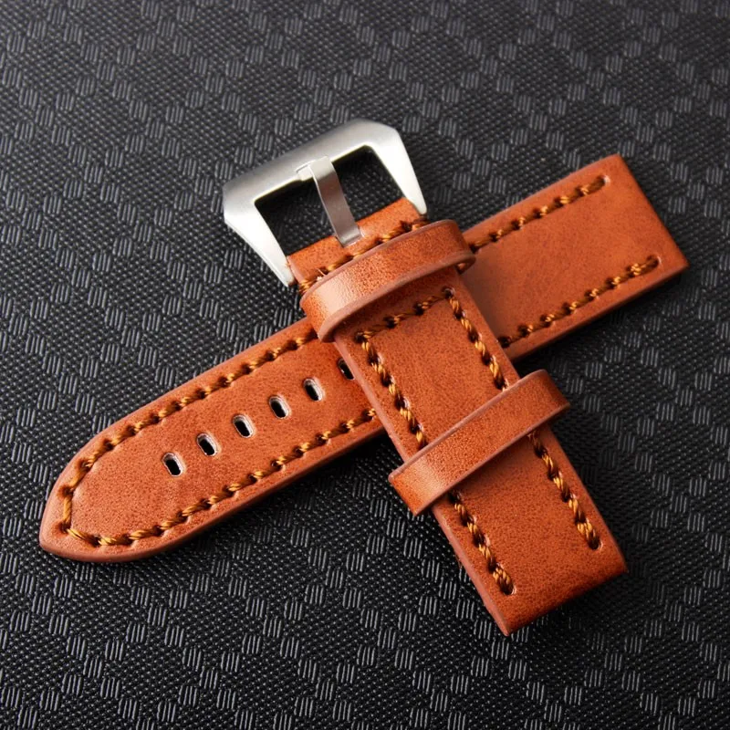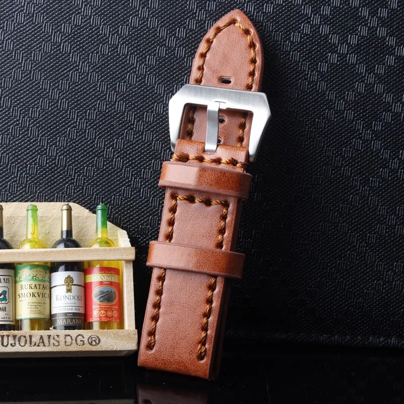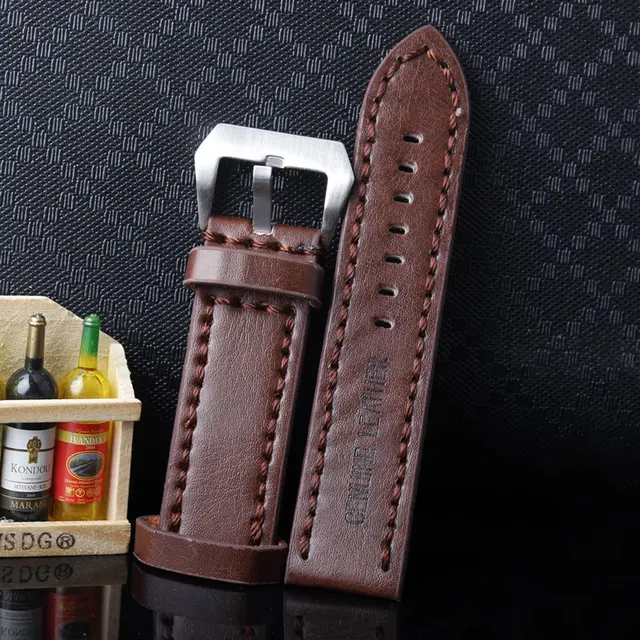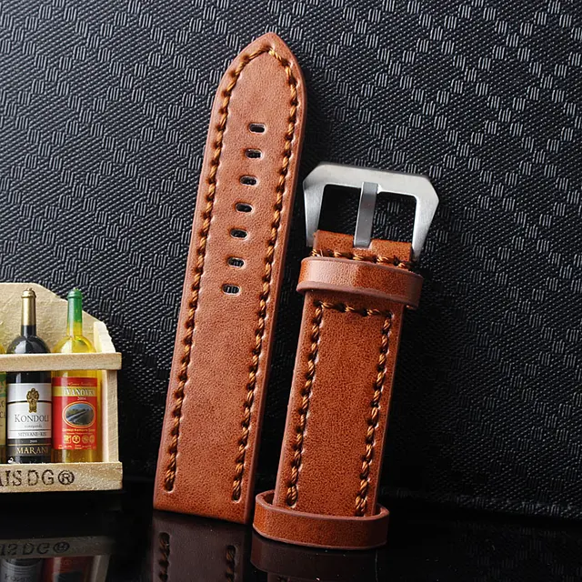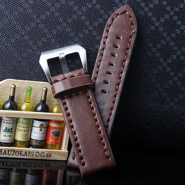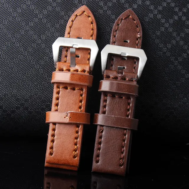 | [해외]내구성 남성 Hight 품질의 가죽 시계 스트랩 남성 24 미리메터 브라운 가죽 시계 밴드 빈티지 밴드 스테인레스 스틸 버클 |
