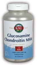 Studio : KAL Publisher : KAL Binding : Health and Beauty Product Description KAL Glucosamine Chondroitin MSM is an advanced joint combo intended to provide nutritive support for normal joint comfort. MSM provides an organic source of sulfur which is necessary for normal cartilage formation. Glucosamine helps keep collagen supple and chondroitin provide lubrication to reduce friction and help joints glide easily. Vitamin C promotes healthy connective tissue and provides antioxidant support. 0