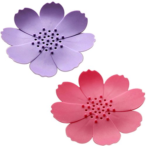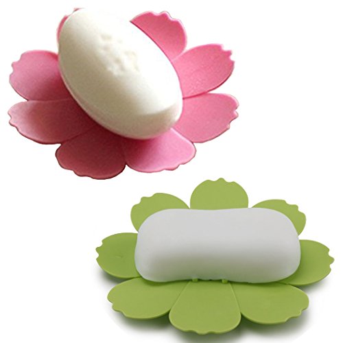 Dianoo 2PCS Soap Box, Stereoscopic Flower Shape Soap Dish Holder, Silica Gel Water Draining Box (Random Colors)