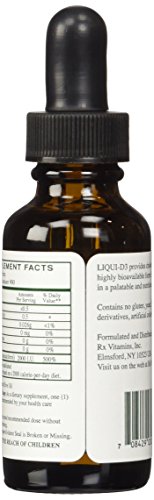 ReleaseDate : 2016-09-02 Studio : Fulfillment Advantage Ventures, Inc (HPC) Publisher : Fulfillment Advantage Ventures, Inc (HPC) Binding : Health and Beauty Product Description LIQUI-D3 provides cholecalciferol, a highly bioavailable form of Vitamin D, in a nutritious, olive oil base. Vitamin D has been the subject of intensive research which has greatly increased our understanding of vitamin D deficiency. This research has also expanded the range of therapeutic applications available for cholecalciferol. Physiologic requirements for vitamin D may be as high as 4000 IU per day. Recommended Usage: As a dietary supplement, one (1) drop daily or as directed by your health care professional. 0