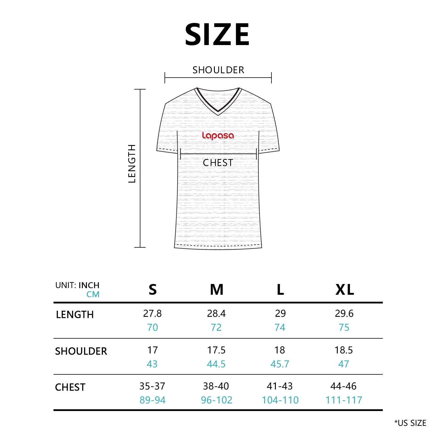 · L (JP-XL): Length / 71; Shoulder width / 43.5; Width of the body / 50; Sleeve length / 22 cm