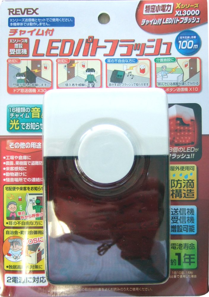 "LED Pato Flash XL 3000 with Reevex Chime" is a received LED patrol flash that notifies you with sound and light when the sensor operates.